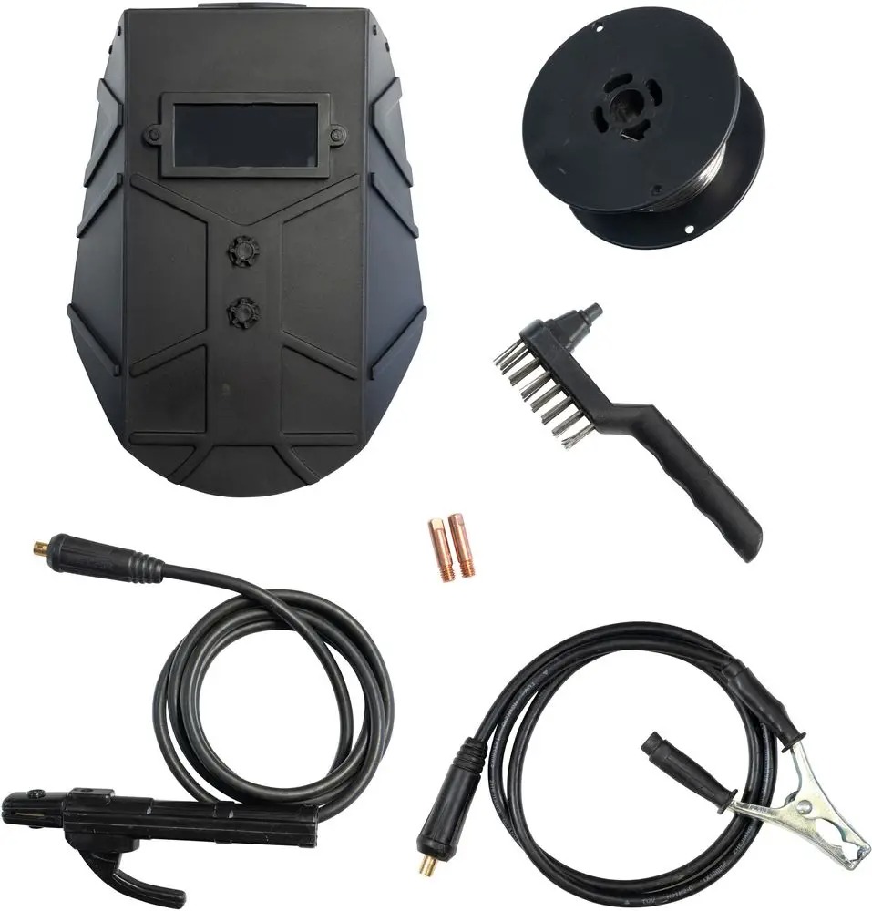 | • | Inkl. Svejseskjold, slaggehammer med børste & 0,45 kg fluskernetråd |
