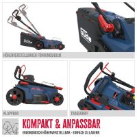 Egenskaber: Leveringsomfang: (batteri og lader fra Easy-Energy-Exchange batteriserien fås separat) Funktioner: Klipning, opsamling og mulching Valgfrit tilbehør: – #58548 Batterioplader LG 18-23 |