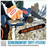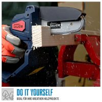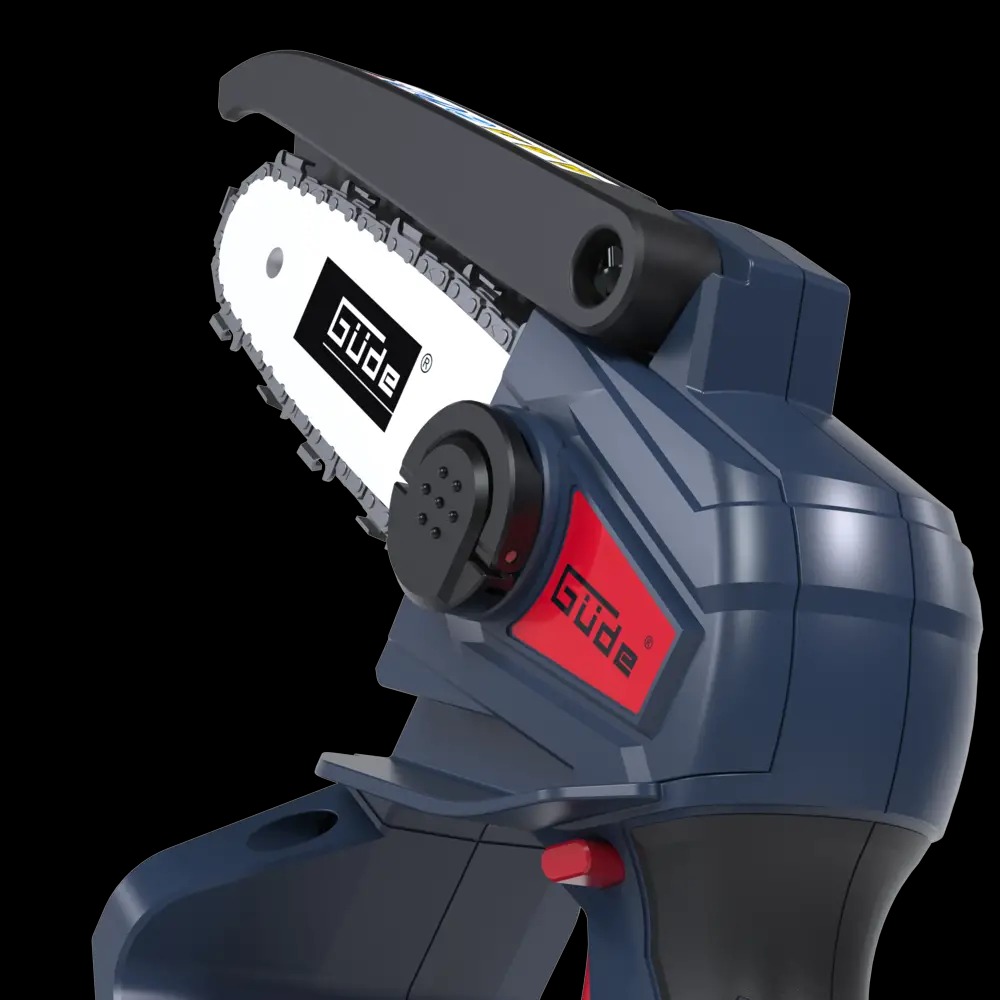 Güde MK 18-201-05 batteridrevet mini-motorsav er en kraftfuld, handy og alsidig enhåndssav til beskæring af frugttræer, kvistning og al træpleje rundt om i huset og i haven. Enhåndskædesaven overbeviser med sin behagelige fornemmelse, en lavvibrerende og højeffektiv elmotor samt dens lave vægt, for træthedsfrit arbejde med én hånd. Den øverste kædesikring og håndbeskyttelsen giver optimal beskyttelse af hænderne mod skader.