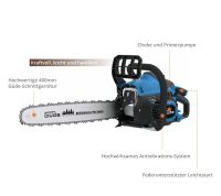 | Kraftig og handy benzinmotorsav ideel til brug i trævedligeholdelse rundt i huset og til lettere brændearbejde.