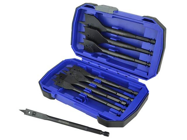 Faithfull Flat bits er designet til at udføre hurtige, rene snit, vil bære alle typer træ og er lige effektive, når der bores med eller mod årerne. Alle bits har en præcisionsslebet spids og skæreflader med forlængede udløbere for hurtigere skæring og en rustbeskyttende finish. Alle størrelser undtagen 6 mm har et skridsikkert sekskantet skaft med en låsemekanisme, der er kompatibel med adaptere eller patroner med en indbygget quick-release funktion.
